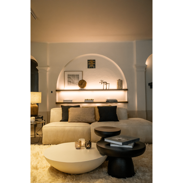 With their round, harmonious shapes, Pretoria occasional tables will quickly become a must-have for your living room. Coated in a unique textured lime plaster finish, Pretoria tables are available in a range of shapes, sizes and colours: off-white, grey, black, blue, yellow and terracotta. You can use them on their own as a side table, or as a group in your living room to create an attractive interplay of heights.