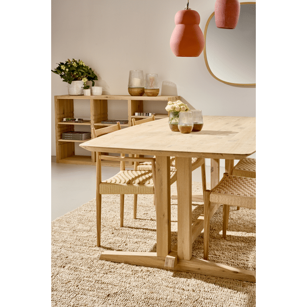 The legs feature a distinctly Japanese style, with clean bevels paying homage to traditional craftsmanship. These refined details highlight a deep respect and appreciation for the oak, which takes centre stage in the design.