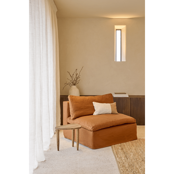 Le blanc cassé, associé à la texture du papier mâché fait main, reflète la même ambiance lumineuse et sereine que les maisons blanchies à la chaux d’Oia, avec une touche d’imperfection artistique.