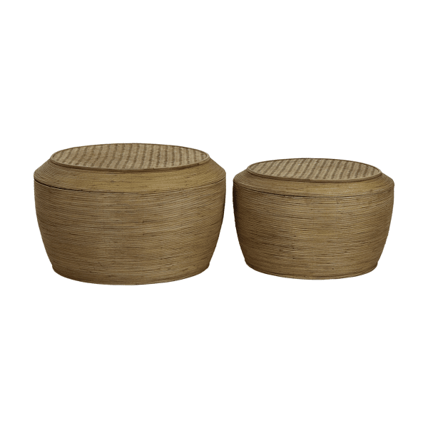 TAMBOU - set/2 tables basses - rotin / bambou - DIA 60/70 x H 35/40 cm - naturel
