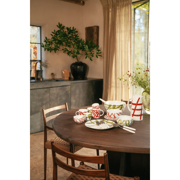 Weve, une collection de vaisselle inspirée du déconstructivisme, explore le dialogue entre contraste et imperfection. Ce qui a commencé par des coups de pinceau isolés à l'aquarelle a été découpé, fragmenté, réorganisé et réassemblé jusqu'à ce que, par le chevauchement des lignes, un motif tissé apparaisse.