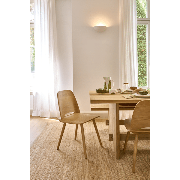 Lucien is een elegante eetkamerstoel in naturel eikenhout, met een zachte ronding in rug en zitting voor extra comfort. De open rugdetails geven de stoel een luchtig, modern karakter. Tijdloos design dat moeiteloos past in zowel klassieke als hedendaagse interieurs.