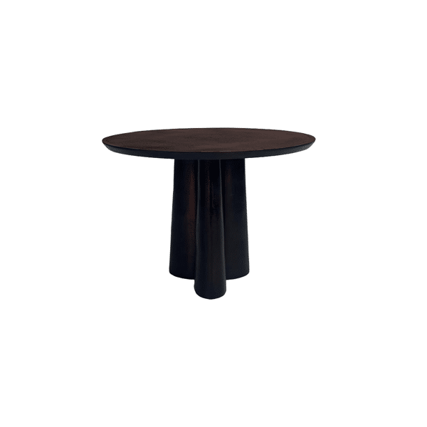 De stevige conische poten en afgeronde tafelbladen geven elk stuk een krachtige, bijna architecturale uitstraling. Dankzij de verschillende hoogtes en diameters kunnen de tafels prachtig worden gecombineerd tot een gelaaid geheel, of zelfverzekerd op zichzelf staan.
